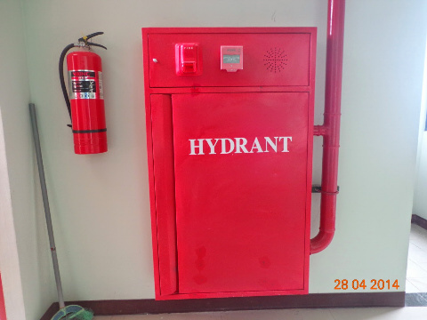 dengan box hydran disampingnya, untuk menyimpan selang (hose) dan nozzle)